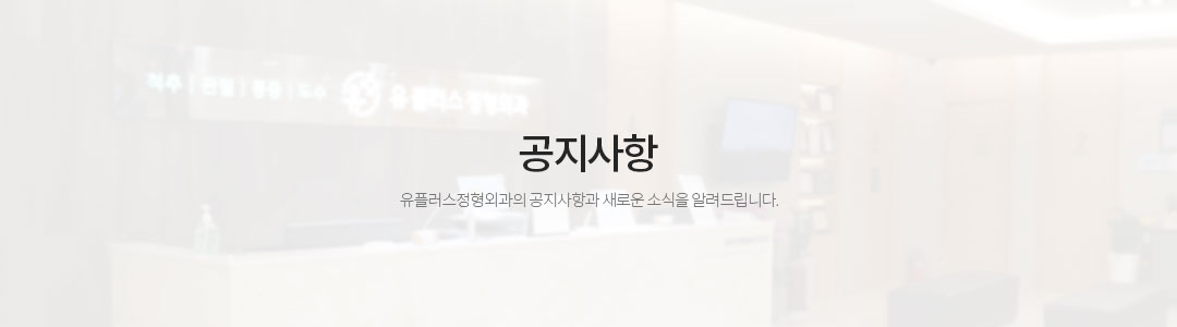 | 1 | 유플러스정형외과 홈페이지 방문을 환영합니다. | 최고관리자 | 2019-11-05 |