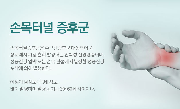 - 손을 반복적으로 사용할 때나, 손목 관절을 장시간 굽히거나 편 상태로 유지할 경우 통증과 감각장애가 심해진다.