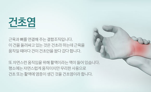 우리 몸 어떤 곳에서도 생길 수 있지만 주로 손목에 많이 발생하고, 손목을 많이 쓰는 사람에게 많이 발생합니다. 또 아기 낳은 지 얼마 안 된 산모, 아기 보는 할머니, 수공예 작업자, 피아니스트 등에 많이 발생합니다. 특히 손목에 많이 발생하는데 손목의 엄지쪽 부위 건초염을 드꿰르벵 손목힘줄염이라고 합니다. 대표적인 발생부위로는 손목, 어깨, 무릎, 발꿈치 후면, 손가락 등입니다.